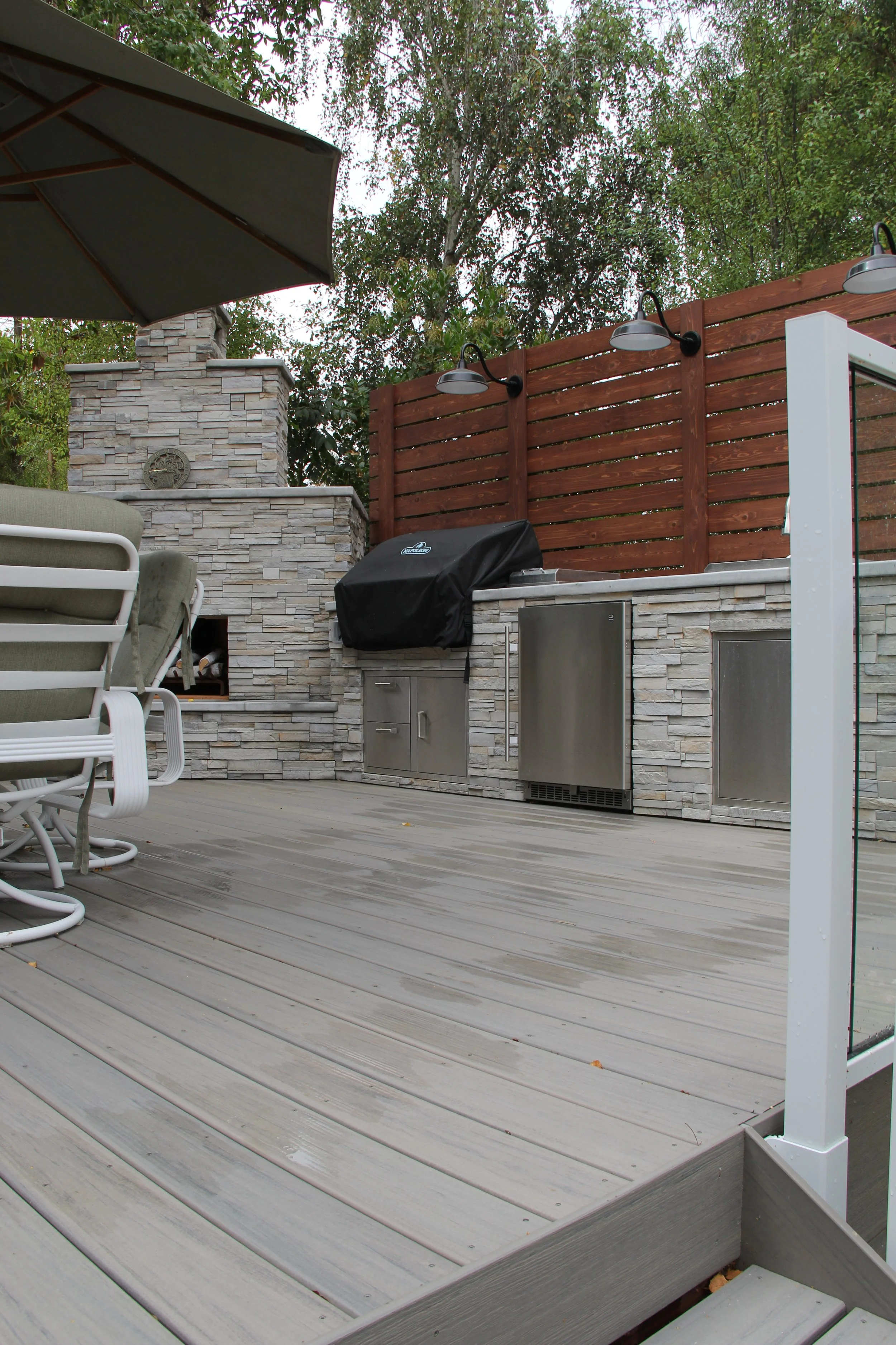 It Modern Two-Level Deck with Custom Fireplace & Grill Station